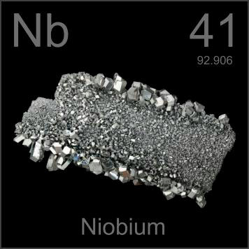 O nióbio é um elemento químico (símbolo Nb) que se encontra entre os metais de transição na Tabela Periódica.